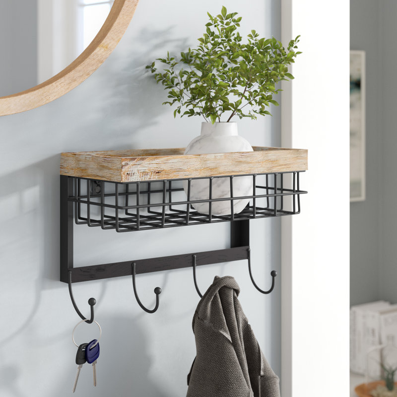 The Rchyfeed Coat Rack Wall Mount pulls double-duty with six hooks for outerwear and a 5.9 inch tray for keys, a wallet and other personal items.It's coated in a black matte powder, which makes it rust resistant Coat rack Coat stand Wall mounted coat rack Brown Black Off-white Gray Red Alaterre Furniture Benzara Safavieh Contemporary/Modern Coastal Country Traditional Mission/Shaker Finished Stained 0 1 2 Finley Alice Leon